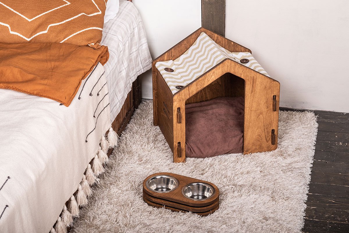 Crea un rincón pet-friendly con cama cómoda y comedero integrado, orden garantizado.