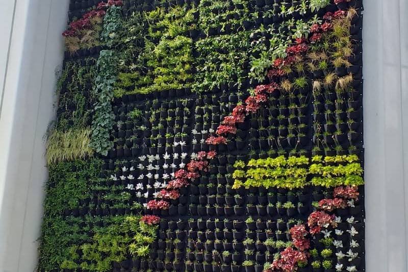 Para la construcción propiamente dicha del jardín vertical en el espacio establecido, Agrojardín Landscaping trabaja en colaboración con Terapia Urbana, una empresa pionera en el desarrollo del sistema Fytotextile, un material sostenible que permite el arraigo de la planta de forma totalmente natural.