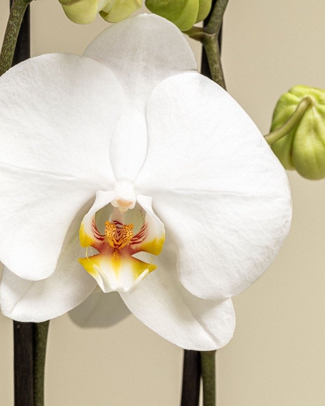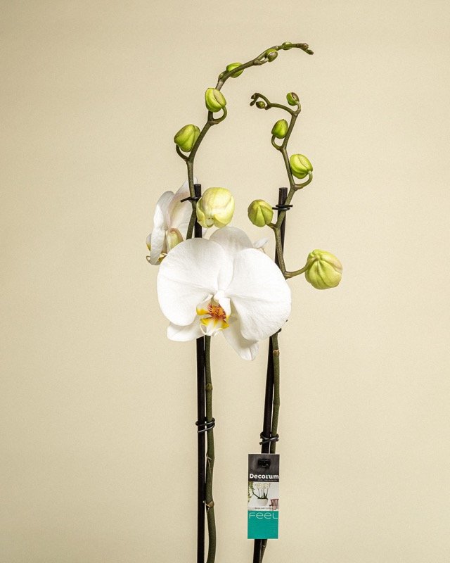 La Phalaenopsis Multiflora, también conocida como orquídea mariposa, es una de las variedades mas queridas por su floración espectacular y duradera. Se presenta en una maceta de 12cm de diámetro y tiene una altura aproximada de 45cm. Para un buen cuidado de la planta es conveniente la luz indirecta brillante, pero no sol directo ya que se pueden quemar sus hojas. Su temperatura ideal es entre 18 y 28ºC, evita las inferiores a 15ºC. Mantener en ambientes húmedos, regar una vez a la semana, evitar que el agua se acumule en el sustrato y es recomendabe vaporizar sus hojas o utilizar huificador en ambientes más secos.